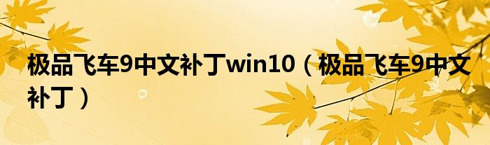 关于极品飞车9中文补丁win10,极品飞车9中文补丁这个很多人还不知道,今天菲菲来为大家解答以上的问题,现在让我们一起来看看吧!