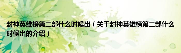 大家好,今天小乐来为大家解答以上的问题。封神英雄榜第二部什么时候出,关于封神英雄榜第二部什么时候出的介绍很多人还不知道,现在让我们一起来看看吧!
