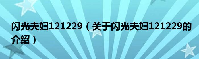 大家好,今天小乐来为大家解答以上的问题。闪光夫妇121229,关于闪光夫妇121229的介绍很多人还不知道,现在让我们一起来看看吧!