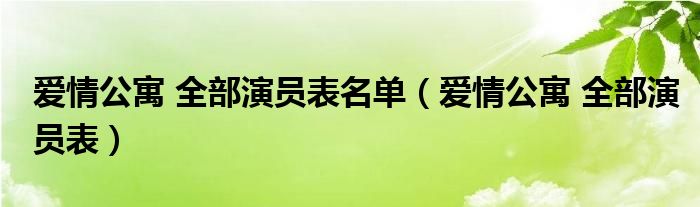 关于爱情公寓 全部演员表名单,爱情公寓 全部演员表这个很多人还不知道,今天菲菲来为大家解答以上的问题,现在让我们一起来看看吧!