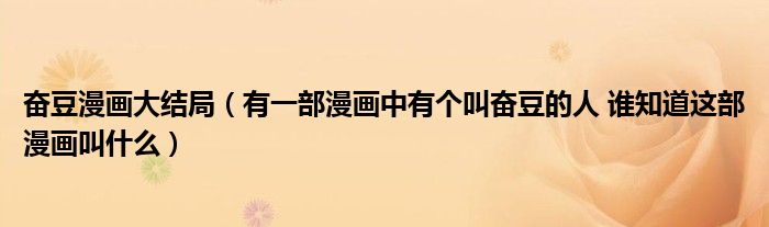 关于奋豆漫画大结局,有一部漫画中有个叫奋豆的人 谁知道这部漫画叫什么这个很多人还不知道,今天菲菲来为大家解答以上的问题,现在让我们一起来看看吧!