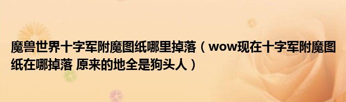 关于魔兽世界十字军附魔图纸哪里掉落,wow现在十字军附魔图纸在哪掉落 原来的地全是狗头人这个很多人还不知道,今天菲菲来为大家解答以上的问题,现在让我们一起来看看吧!