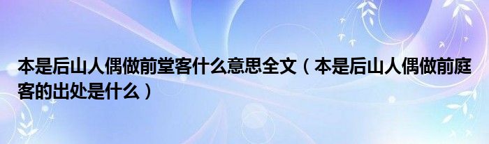 关于本是后山人偶做前堂客什么意思全文,本是后山人偶做前庭客的出处是什么这个很多人还不知道,今天菲菲来为大家解答以上的问题,现在让我们一起来看看吧!