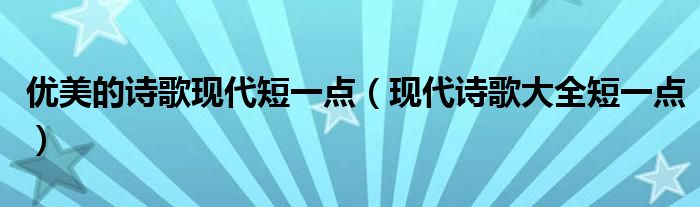 关于优美的诗歌现代短一点,现代诗歌大全短一点这个很多人还不知道,今天菲菲来为大家解答以上的问题,现在让我们一起来看看吧!