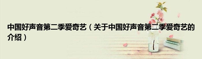 大家好,今天小乐来为大家解答以上的问题。中国好声音第二季爱奇艺,关于中国好声音第二季爱奇艺的介绍很多人还不知道,现在让我们一起来看看吧!