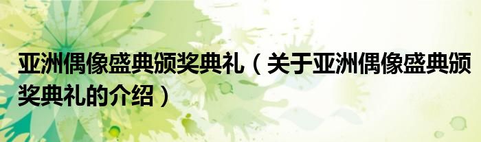 大家好,今天小乐来为大家解答以上的问题。亚洲偶像盛典颁奖典礼,关于亚洲偶像盛典颁奖典礼的介绍很多人还不知道,现在让我们一起来看看吧!