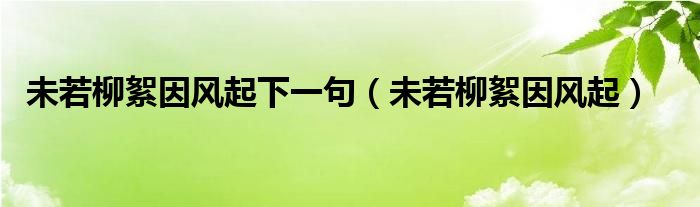 关于未若柳絮因风起下一句,未若柳絮因风起这个很多人还不知道,今天菲菲来为大家解答以上的问题,现在让我们一起来看看吧!