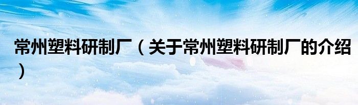 大家好,今天小乐来为大家解答以上的问题。常州塑料研制厂,关于常州塑料研制厂的介绍很多人还不知道,现在让我们一起来看看吧!