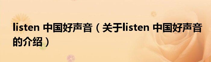 大家好,今天小乐来为大家解答以上的问题。listen 中国好声音,关于listen 中国好声音的介绍很多人还不知道,现在让我们一起来看看吧!