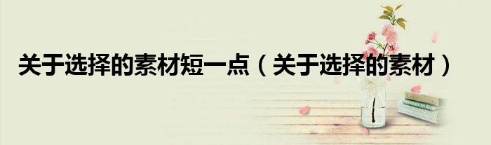 关于关于选择的素材短一点,关于选择的素材这个很多人还不知道,今天菲菲来为大家解答以上的问题,现在让我们一起来看看吧!