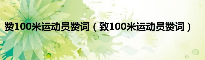 关于赞100米运动员赞词,致100米运动员赞词这个很多人还不知道,今天菲菲来为大家解答以上的问题,现在让我们一起来看看吧!
