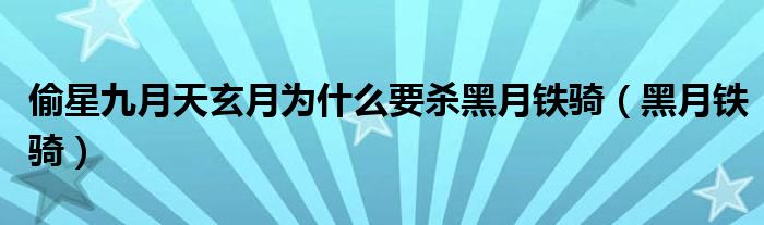 关于偷星九月天玄月为什么要杀黑月铁骑,黑月铁骑这个很多人还不知道,今天菲菲来为大家解答以上的问题,现在让我们一起来看看吧!