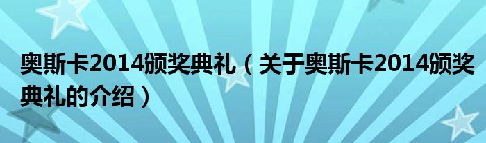 大家好,今天小乐来为大家解答以上的问题。奥斯卡2014颁奖典礼,关于奥斯卡2014颁奖典礼的介绍很多人还不知道,现在让我们一起来看看吧!