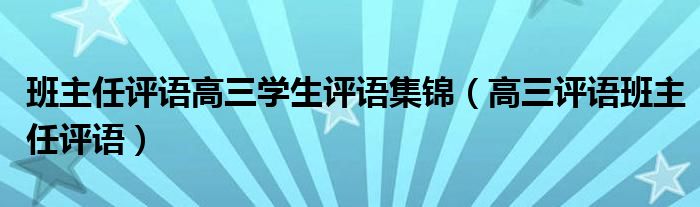 关于班主任评语高三学生评语集锦,高三评语班主任评语这个很多人还不知道,今天菲菲来为大家解答以上的问题,现在让我们一起来看看吧!