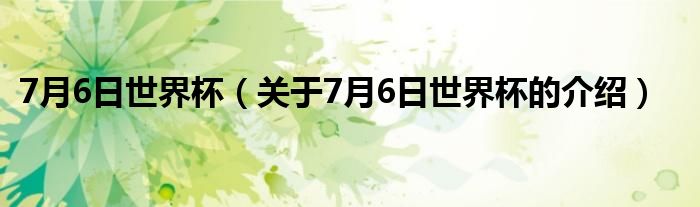 大家好,今天小乐来为大家解答以上的问题。7月6日世界杯,关于7月6日世界杯的介绍很多人还不知道,现在让我们一起来看看吧!