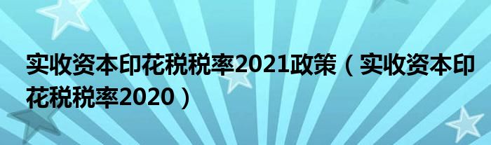 关于实收资本印花税税率2021政策,实收资本印花税税率2020这个很多人还不知道,今天菲菲来为大家解答以上的问题,现在让我们一起来看看吧!