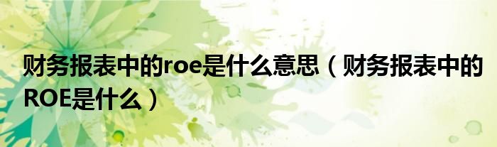 关于财务报表中的roe是什么意思,财务报表中的ROE是什么这个很多人还不知道,今天菲菲来为大家解答以上的问题,现在让我们一起来看看吧!