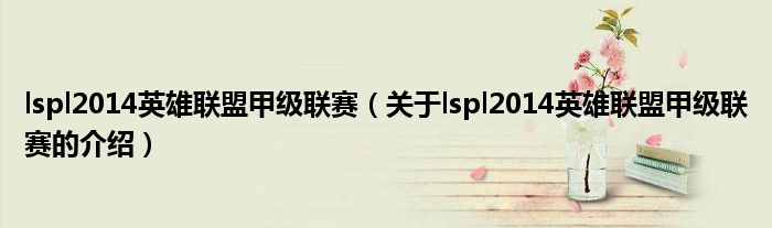 大家好,今天小乐来为大家解答以上的问题。lspl2014英雄联盟甲级联赛,关于lspl2014英雄联盟甲级联赛的介绍很多人还不知道,现在让我们一起来看看吧!