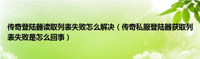 关于传奇登陆器读取列表失败怎么解决,传奇私服登陆器获取列表失败是怎么回事这个很多人还不知道,今天菲菲来为大家解答以上的问题,现在让我们一起来看看吧!