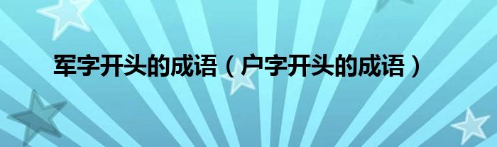 关于军字开头的成语,户字开头的成语这个很多人还不知道,今天菲菲来为大家解答以上的问题,现在让我们一起来看看吧!