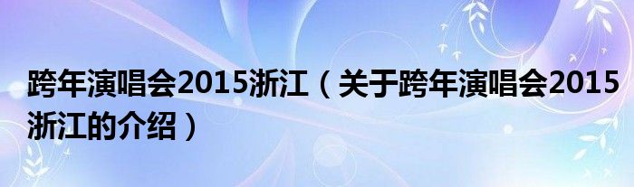 跨年演唱会2015浙江(关于跨年演唱会2015浙江的介绍)