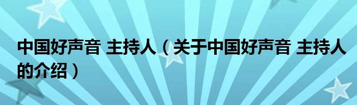 大家好,今天小乐来为大家解答以上的问题。中国好声音 主持人,关于中国好声音 主持人的介绍很多人还不知道,现在让我们一起来看看吧!
