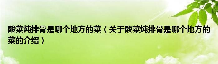 大家好,今天小乐来为大家解答以上的问题。酸菜炖排骨是哪个地方的菜,关于酸菜炖排骨是哪个地方的菜的介绍很多人还不知道,现在让我们一起来看看吧!