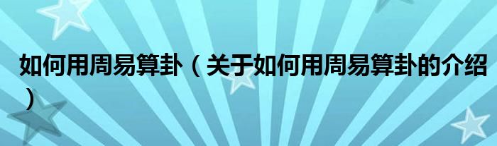 大家好,今天小乐来为大家解答以上的问题。如何用周易算卦,关于如何用周易算卦的介绍很多人还不知道,现在让我们一起来看看吧!