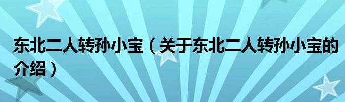 东北二人转孙小宝(关于东北二人转孙小宝的介绍)