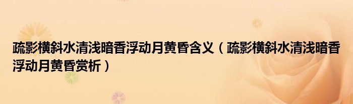 关于疏影横斜水清浅暗香浮动月黄昏含义,疏影横斜水清浅暗香浮动月黄昏赏析这个很多人还不知道,今天菲菲来为大家解答以上的问题,现在让我们一起来看看吧!