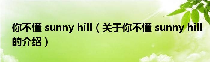 大家好,今天小乐来为大家解答以上的问题。你不懂 sunny hill,关于你不懂 sunny hill的介绍很多人还不知道,现在让我们一起来看看吧!