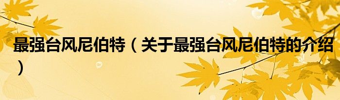 大家好,今天小乐来为大家解答以上的问题。最强台风尼伯特,关于最强台风尼伯特的介绍很多人还不知道,现在让我们一起来看看吧!