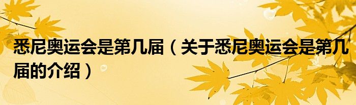 大家好,今天小乐来为大家解答以上的问题。悉尼奥运会是第几届,关于悉尼奥运会是第几届的介绍很多人还不知道,现在让我们一起来看看吧!