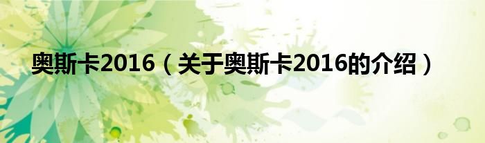 大家好,今天小乐来为大家解答以上的问题。奥斯卡2016,关于奥斯卡2016的介绍很多人还不知道,现在让我们一起来看看吧!