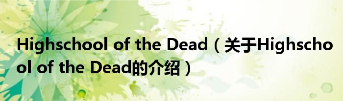 大家好,小都来为大家解答以上的问题。Highschool of the Dead,关于Highschool of the Dead的介绍很多人还不知道,现在让我们一起来看看吧!