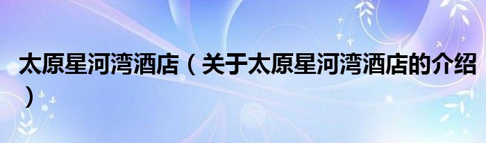 大家好,小都来为大家解答以上的问题。太原星河湾酒店,关于太原星河湾酒店的介绍很多人还不知道,现在让我们一起来看看吧!