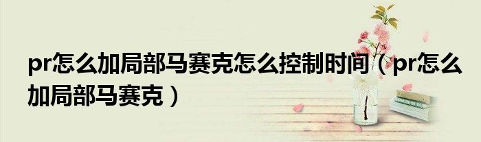 关于pr怎么加局部马赛克怎么控制时间,pr怎么加局部马赛克这个很多人还不知道,今天菲菲来为大家解答以上的问题,现在让我们一起来看看吧!