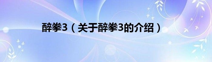 大家好,小都来为大家解答以上的问题。醉拳3,关于醉拳3的介绍很多人还不知道,现在让我们一起来看看吧!