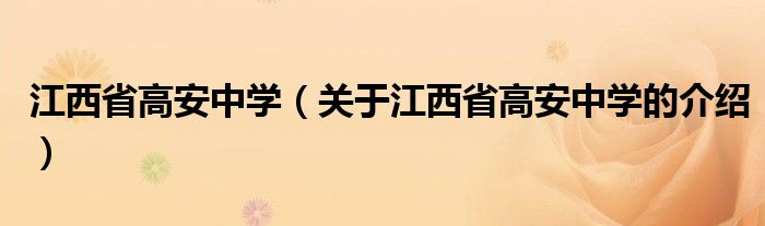 江西省高安中学(关于江西省高安中学的介绍)