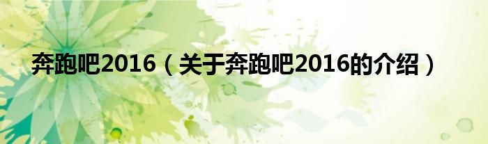 大家好,小都来为大家解答以上的问题。奔跑吧2016,关于奔跑吧2016的介绍很多人还不知道,现在让我们一起来看看吧!