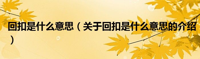 大家好,小都来为大家解答以上的问题。回扣是什么意思,关于回扣是什么意思的介绍很多人还不知道,现在让我们一起来看看吧!