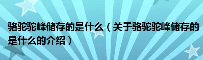 大家好,小都来为大家解答以上的问题。骆驼驼峰储存的是什么,关于骆驼驼峰储存的是什么的介绍很多人还不知道,现在让我们一起来看看吧!