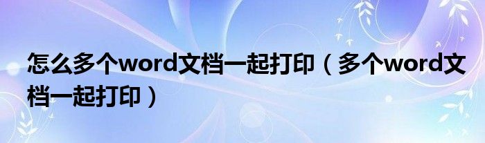 关于怎么多个word文档一起打印,多个word文档一起打印这个很多人还不知道,今天菲菲来为大家解答以上的问题,现在让我们一起来看看吧!