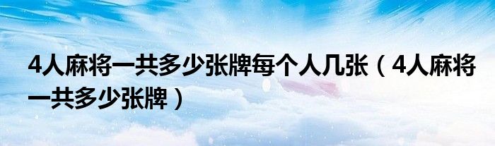 大家好,小晋来为大家解答以下问题,关于4人麻将一共多少张牌每个人几张,4人麻将一共多少张牌很多人还不知道,今天让我们一起来看看吧!