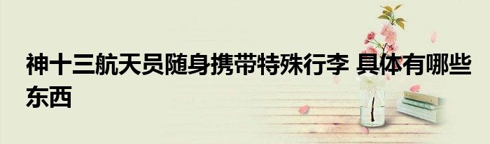 大家好.我是互联百科的羽儿,现在为大家解决以上神十三航天员随身携带特殊行李 具体有哪些东西的问题.