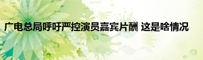 2、日前,一则“广电总局呼吁严控演员嘉宾片酬”引发关注。据悉,广电总局近期开始呼吁严控演员嘉宾片酬,这到底是什么情况?