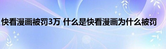 大家好.我是互联百科的羽儿,现在为大家解决以上快看漫画被罚3万 什么是快看漫画为什么被罚的问题.