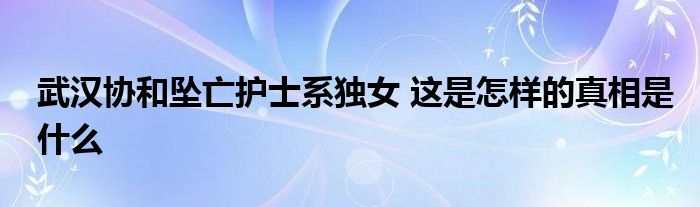 大家好.我是互联百科的羽儿,现在为大家解决以上武汉协和坠亡护士系独女 这是怎样的真相是什么的问题.