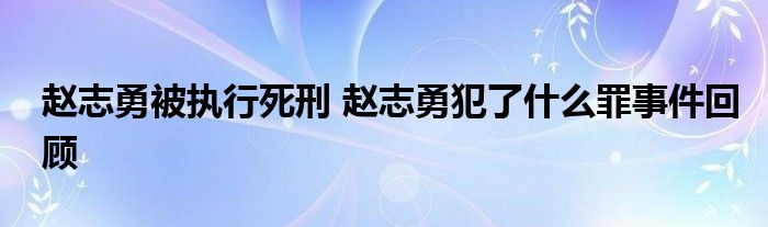 大家好.我是互联百科的羽儿,现在为大家解决以上赵志勇被执行死刑 赵志勇犯了什么罪事件回顾的问题.