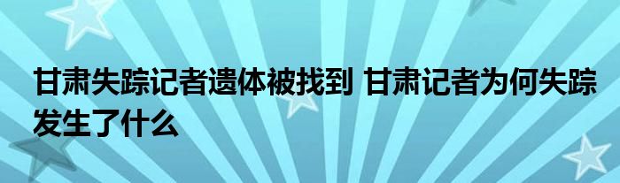 大家好.我是互联百科的羽儿,现在为大家解决以上甘肃失踪记者遗体被找到 甘肃记者为何失踪发生了什么的问题.